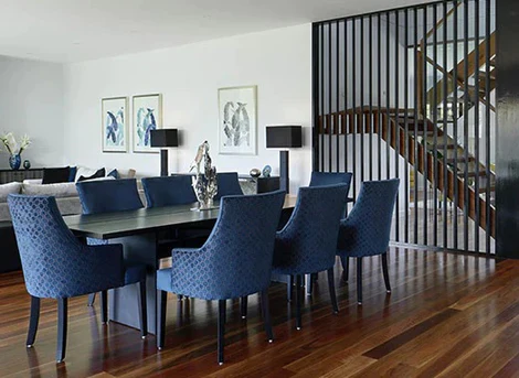 Create a vibrant dining area with statement furniture pieces and accent lighting to make every meal a special occasion